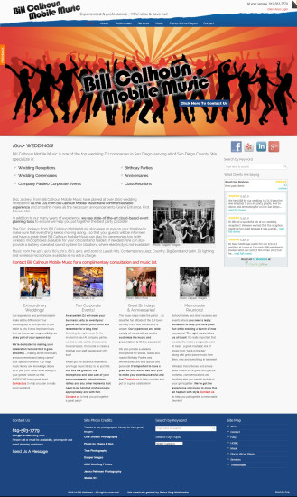 calhoun_home_LAUNCH_11-19-2014Brass Ring client, friend and long time mentor, Bill Calhoun, DJ / MC has been making special events great throughout San Diego and Southern California for many years. In fact, years ago, Bill helped launch my own ongoing career as a DJ/MC (Brass Ring is my “day job”). Bill was my first boss and teacher. He was an exceptional employer and continues to be an excellent DJ/MC, especially in his specialty, weddings. You should just read his testimonials from happy brides and grooms! (In fact, you can do that HERE and see the actual notes his clients have sent him)
